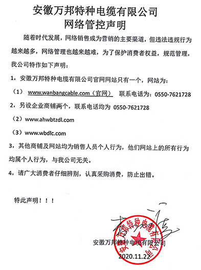 鄭重聲明:安徽萬邦特種電纜有限公司官方網站為:www_wanbangcable_com.blueship.cn,除此之外無任何子網站或合作網站,其余均為假冒偽劣。電話:0550-7621728 13485756353 地 址:安徽省天長市滁州高新技術產業開發區經四路29號